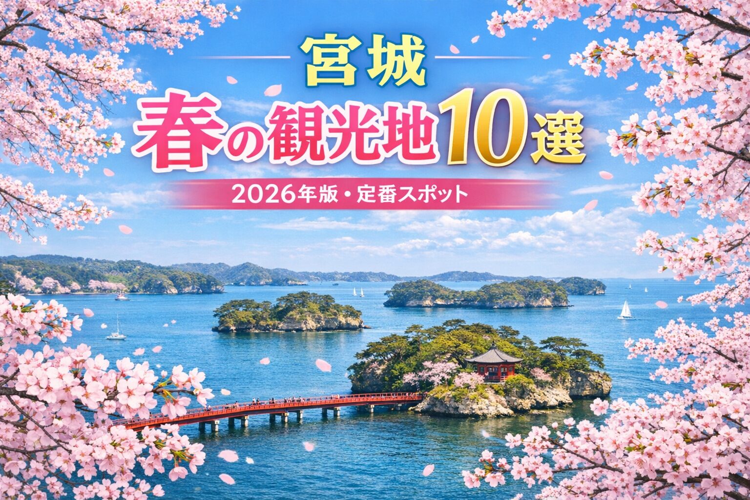 春の宮城は、桜・歴史・自然・グルメが一度に楽しめる旅行先として、県内外から多くの人が訪れます。宮城の良さはこれだけ多彩な観光資源がコンパクトなエリアに集まっていること。松島・蔵王・仙台市内の歴史スポット・温泉・いちご狩りまで、春に来れば一度で様々な体験ができます。