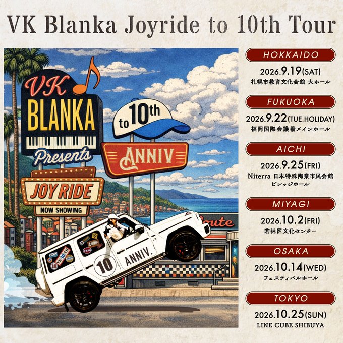 「ファビュラス」「ウララ」などのヒット曲で知られるシンガーソングライター、ビッケブランカのツアー「VK Blanka Joyride to 10th Tour」の宮城公演開催が決定したようです!