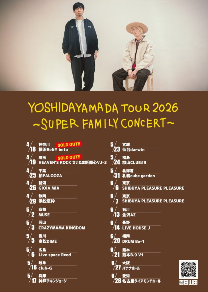 「ファミリー」をテーマにした楽曲で幅広い世代に愛される2人組フォークデュオ、吉田山田のツアー「吉田山田ツアー2026〜SUPER FAMILY CONCERT〜」の仙台公演開催が決定したようです!